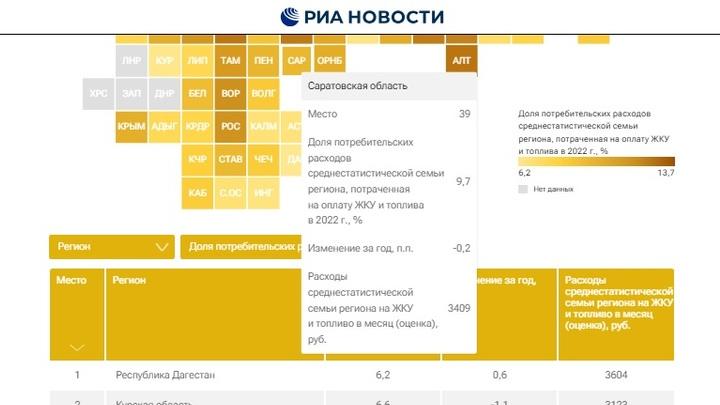 Саратовская область вошла в число регионов с низкими затратами на "коммуналку"
