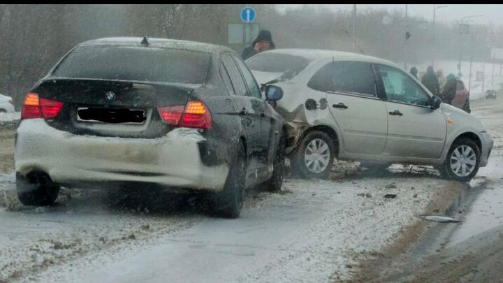 Nissan вылетел с дороги в массовой аварии на Усть-Курдюмском шоссе в Саратове