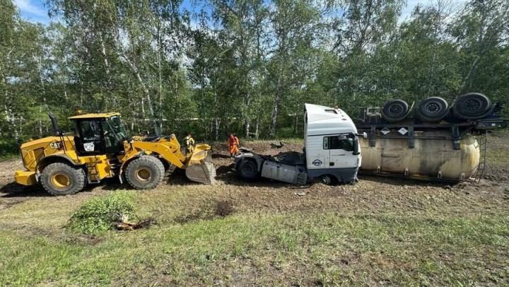 Тягач с соляной кислотой перевернулся в Вольском районе