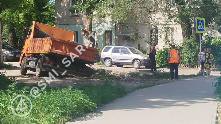 КамАЗ провалился в яму на Мельничной: дорога-ловушка в Саратове