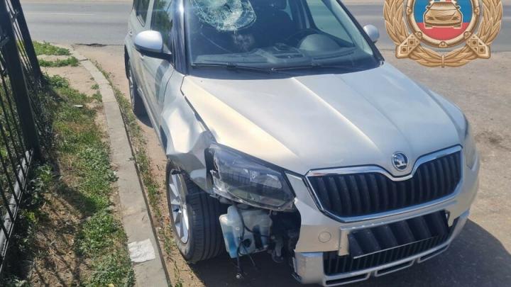 Женщина за рулём Skoda сбила дорожный знак в Саратове