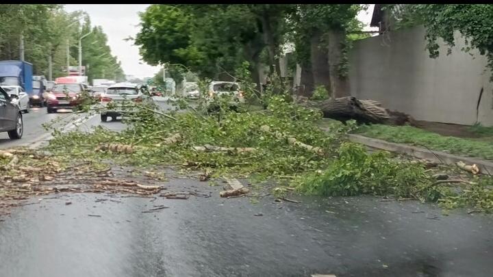 Последствия урагана в Саратове: дерево упало на два авто на Шехурдина