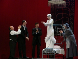 На "Чуде святого Антония" аплодисменты по окончанию спектакля раздаются не сразу. Потому как зрителям ещё предстоит опомниться от увиденного, и перевести дыхание. И смахнуть с глаз слёзы, увлажняющие глаза не только женщин, но и мужчин. Но когда аплодисменты всё же начинаются, они щедры и долги. Во времена крушения подавляющего числа идеалов, в период множащейся нестабильности и инфляции не только цен, но и чувств, мыслей, поступков, это уникальная постановка. Мы совсем недавно, каких-то пару месяцев назад вступили в новый год, которым нас активно и неустанно стращают и астрологи, и политологи, и экономисты. Разговоры о конце света, о резко обрывающемся календаре майя утомили даже тех, кто с интересом следил за динамикой подобных дискуссий. В сущности, рано или поздно каждого из нас ждёт личный, персональный конец света. Уж от него то - точно не уйти, не откупиться и не откреститься никому - от гениев до "людей дождя", от многомиллиардных олигархов до бездомных расстриг. Но перед тем, как грянет личный конец света, важно всё таки осознать: кто ты есть? И зачем ты на этой земле? И какие слова ты говоришь, но какие дела при этом делаешь? И по какому ведомству служишь - ладаном или серой веет от работодателя… твоей души. Это болезненные вопросы, и отвечать на них не хочется. Но ведь придётся! Подавляющему большинству из нас куда больше по душе что-нибудь праздничное, карнавально - беспроблемное, веселящее душу и уводящее от мыслей о насущном. Метерлинк смешал жанры и написал трогательную и жёсткую, смешную и устрашающе горькую пьесу о смысле и бессмысленности земного бытия, о том, что, будучи смертными, мы подчас ведём себя как жестокие и легкомысленные божества, а столкнувшись с небесной благодатью, чаще всего стремимся втоптать чудо в землю. Это умный и при этом увлекательный, мировоззренческий спектакль, за который хочется сказать его постановщикам и актёрам огромное спасибо.