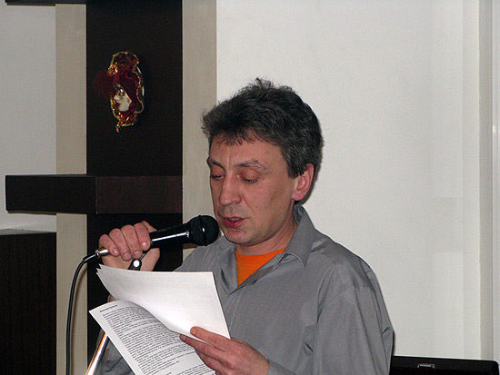 Что касается самих текстов Репина, то, в общем и целом они были далеко не добрые и не светлые. Местами философские, местами ироничные, даже циничные, практические всегда рефлективные. Их можно охарактеризовать, как некий поток сознания, содержащий попытки нахождения точек соприкосновения с окружающей действительностью, попытки самосознания. Большинство миниатюр, прозвучавших в первом отделении, написаны в так называемом жанре алкопрозы. Но главное – это мастерское владение словом и оригинальная авторская стилистика. Потрясающая аллегоричность в сочетании с нестандартной фоникой. Зачастую невозможно понять, что производит большее впечатление: содержательная составляющая или вызывающе яркий звукоряд текста. И особенно подкупают провокационная искренность и смелость. Автор не боится быть смешным, странным, откровенным.