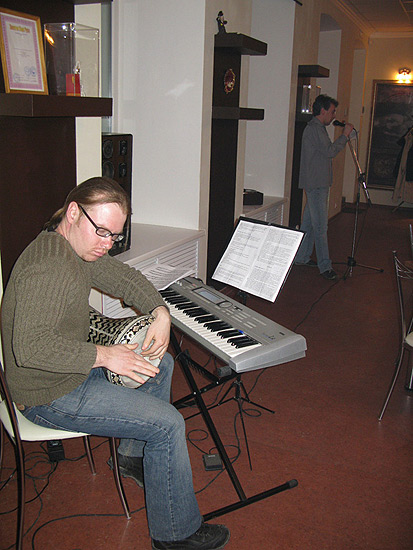 Именно под таким названием 25 марта прошел творческий вечер саратовского писателя Вячеслава Репина. Вячеслав Репин работает в жанре миниатюры. Он появился на сцене в майке с надписью "Генератор душевной теплоты" и в сопровождении Лауреата международных конкурсов, пианиста Ярослава Егорова. Творческий тандем двух Слав оказался не просто славным, но и весьма оригинальным, а главное – высокопрофессиональным. Блестящая, практически актерская манера чтения Репина и виртуозное владение синтезатором Егорова усиливали впечатление от текстов настолько, что буквально заворожили публику.