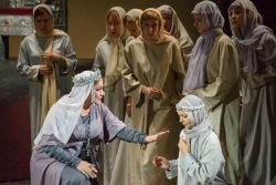 Музыка-то возвышенная, небесная, то откровенно-чувственная. Страсть и боль. Власть и церковь. Спектакль, демонстрирующий разные миры. С одной стороны - люди, измотанные бедами, изнурённые холопством, тяжело, но последовательно выправляющие свою суть. Многочисленные кресты, вознесённые волей режиссёра Андрея Сергеева над сценой - сродни крёстному пути и одновременно подъёму, воскресению. Россия, уверовавшая в князя, способного вывести её из тьмы – одна тема спектакля. Другая его тема (и-соответственно-музыка!) - Восток во всём его многоообразии. Его культура и философская составляющая, стремление доминировать, жестокость и одновременно способность восхититься достойным противником. Музыка Бородина не делит мир на "наших" и "не наших". Она, как и положено явлению гениального искусства рисует людей, обуреваемых страстями, и потому интересных. Кончаковну (убедительная в этой партии Марина Демидова), обуреваемую страстью к сыну князя Игоря жаль не менее, чем Ярославну, тоскующую по своему князю. Половецкий хан в харизматичном и одновременно остро характерном исполнении народного артиста России Владимира Верина не просто противник князя Игоря. Он - иная Вселенная, иное сознание. Опера населена людьми, жаждущими и рождёнными царствовать-на троне и в сердцах. Россия, стремящаяся к воскресению- современный и рвущий сердце сюжет. Режиссёру-постановщику "Князя Игоря" Андрею Сергееву удалось эмоционально воздействовать при минималистких средствах. Когда с пленных русичей половцы срывают кресты, а в финале звонят колокола, собирающие народ, на глаза наворачиваются слёзы.