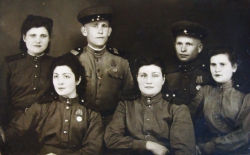 Однажды она передавала радиограмму, сидя в штабе и на порог грохнулась бомба. И все замерли.…А бомба не разорвалась. Чудо? Конечно! А разве не светлым чудом для девушки по имени Ирина (на фото первая слева в первом ряду ) стала встреча с Оксаной?! Красавица Ирина сбежала из еврейского гетто, была вся в синяках , истощенная, измученная. Оксана привела несчастную к командованию, упросила накормить, одеть и оставить в рядах советской армии… Вчерашняя пленница освоила навыки радистки и так же -как своя спасительница прошла всю войну.