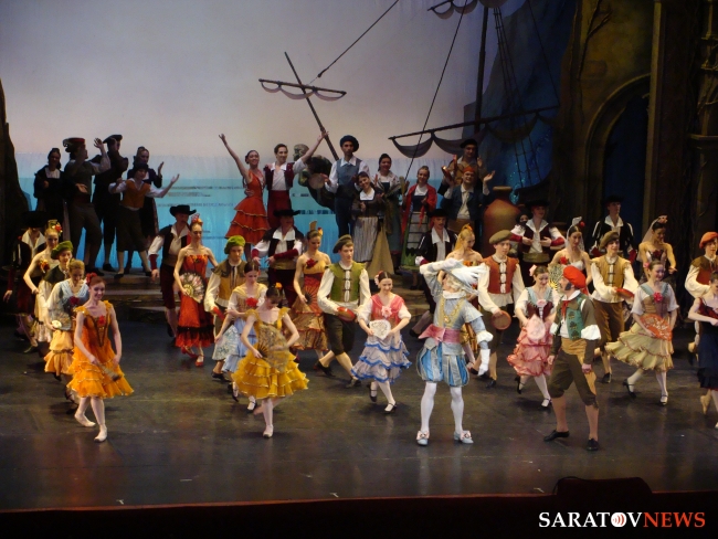Именно сегодня, в день театра хочу поделиться с любителями театра впечатлениями именно о таком, ансамблевом спектакле. В Саратове давно не было столь успешного балета. Зрелищного, динамичного и не побоюсь этого слова - блистательного. Это раньше балетоманы ходили в театр преимущественно на красивый балетный союз народных артистов России Людмилы Телиус Телиус и Игоря Стецюра, а в новейшие времена- на Шарипову или Колосову, Михеева или Родионова. Февральская премьера Саратовской академоперы- балет «Дон Кихот» Минкуса - тот самый случай, когда прекрасен и на редкость целостен ВЕСЬ СПЕКТАКЛЬ. Балетмейстер, лауреат Национальной премии «Золотая маска» Кирилл Симонов осуществил заслуживающее восхищения действо - спектакль под его руководством пошёл в рост, пропитался идеалами возвышенной эстетики, и кордебалет, заиграв новыми красками, стал много вдохновеннее, выразительнее и даже… грациознее. На премьере «Дон Кихота» меня не оставляло счастливое ощущение, что все до единого артисты не просто формально исполняют порученные им партии, а танцуют с тем упоением и радостью, которые и создают шарм и очарование БОЛЬШОГО БАЛЕТА. Чтобы подобное произошло, с людьми надо уметь работать. Уточню: много и умно работать, и приглашённый молодой балетмейстер явно смог найти взаимопонимание с каждым танцовщиком-не зависимо от того солист тот или артист кордебалета. Даже в незначительных, на первый взгляд, штрихах спектакль состоялся. Раньше на постановках Саратовского балета улыбку можно было уловить если только на губах прима-балерины - в творении Минкуса улыбаться научились все занятые на сцене, и поверьте: эта солнечность, одухотворённость лиц тоже придала постановке особый шарм. Родилось праздничное, ликующее - под стать музыке Минкуса (браво, оркестр!) зрелище, щедро транслирующее настроение радости в зал.