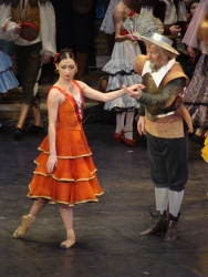 Не смотря на то, что «Дон Кихот» получился на редкость ансамблевым спектаклем, об исполнительнице партии Китри, выпускнице знаменитого Вагановского училища Вере Шариповой, которой зал рукоплескал долго и с видимым удовольствием, надлежит сказать отдельно. Танец она явно чувствует не только через музыку, но и через сердце, и потому воплощает хореографические фантазии дерзко и одновременно проникновенно. Яркий темперамент окрашивает танец Шариповой, и потому он становится не просто суммой безупречных движений, а гимном женской души – ещё наивной, но уже от природы чувственной, кокетливой и, стало быть, отважно будоражащей и эмоционально воспламеняющей мир вокруг. У выдающегося поэта Райнера Марии Рильке есть стихотворение «Испанская танцовщица». Вот несколько строк из него: