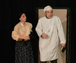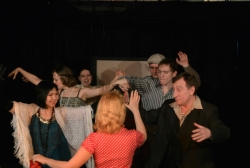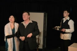 Приятно поразила зав. лит театра Ольга Лапшина. Она тоже исполнила в спектакле множество женских характеров…правда, в одном человеке. Её Анна это женщина, ищущая свой остров среди девятого вала, мягко говоря, сложной соцсоциалистической действительности. Островом, естественно, является мужчина, которого сия дама избирает. О том, каков этот мужчина, можно судить по каждой новой героине Лапшиной, потому как она неизменно отражение каждого своего избранника. Она перевоплощается под вкусы его, своего очередного мужа-возлюбленного. Лапшина, в своё время пленившая лично меня тем, как страстно и взволнованно она читала Цветаеву на особом, посвящённом Поэту спектакле, где любимыми строчками делились не только актёры, но и зрители, подтвердила моё ощущение: заведующая литературной частью театра может ярко и остроумно играть.