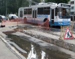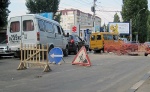 Из-за работ на проезжей части возникла крупная пробка. Фото
