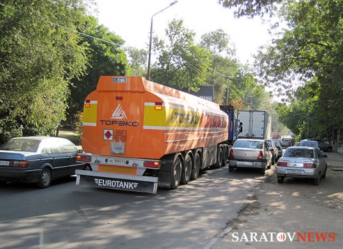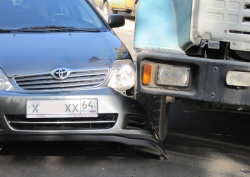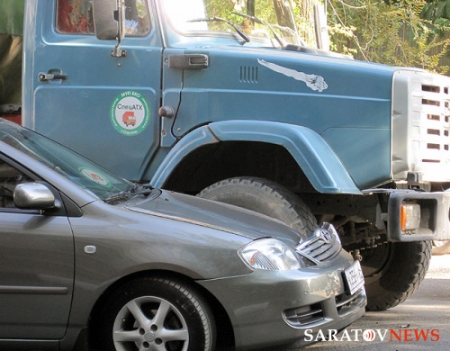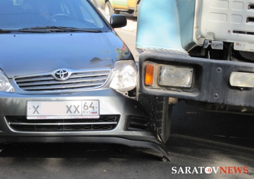 "Приора" столкнулась с грузовиком в Саратове и врезалась в ограждение