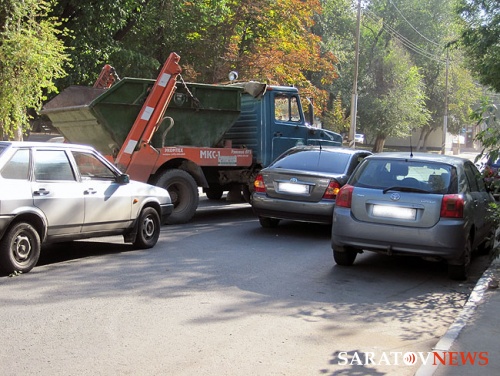 У СГСЭУ столкнулись "девятка", внедорожник, "Королла" и мусоровоз