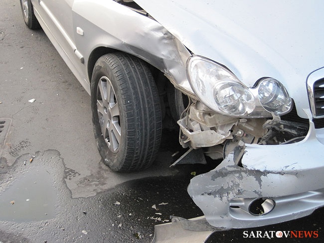 "Приора" столкнулась с грузовиком в Саратове и врезалась в ограждение