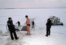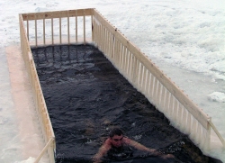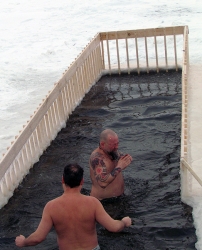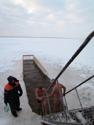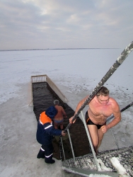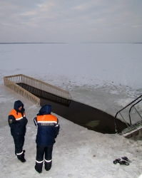 В Саратове сегодня морозная погода без осадков. На хрупкий волжский лед саратовцев не пускают, установлены ограждения. К прорубям с набережной ведут металлические лестницы. У Ротонды приготовлены к купанию сразу две проруби, основная и запасная, на случай наплыва посетителей.