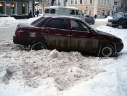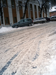 На проезжей части основных магистралей образовалась наледь и скопилось большое количество снега. Автомобили передвигаются медленно. С той же скоростью движется и пассажирский транспорт, и многим горожанам сегодня пришлось опаздать на работу, учебу.
