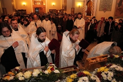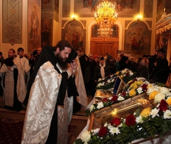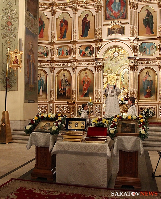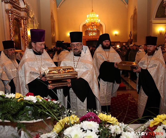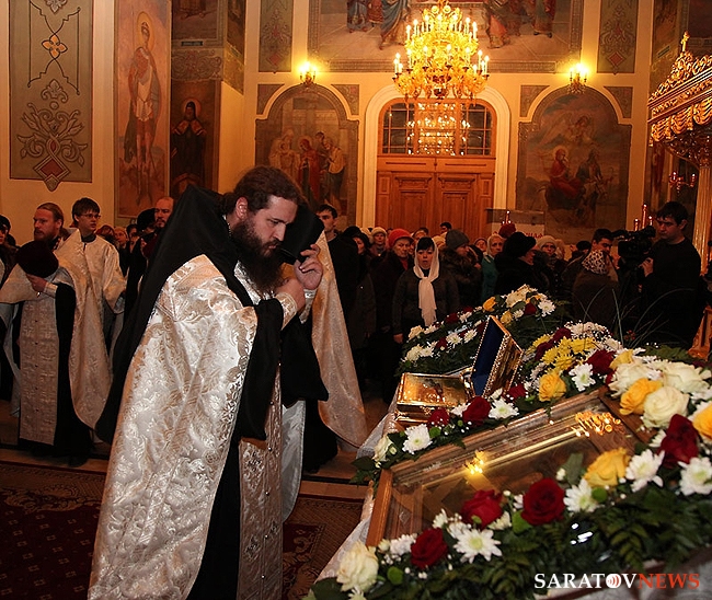 Мощи, доставленные из Воронежской епархии, будут пребывать в Саратовской епархии до 31 января. Ежедневно с 12.00 до 16.00 будут совершаться молебны с акафистами святым.