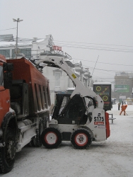 Основные работы по вывозу и утилизации снежных масс будут проводиться в предстоящую ночь, так как в дневные часы комплексно осуществлять эту работу затрудняет интенсивный транспортный поток. Сейчас процесс вывоза снежных масс локализован и производится по мере необходимости.