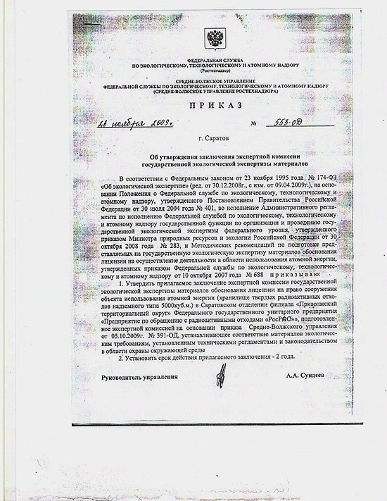 ФГУП "РосРАО" (структурное подразделение "Росатома") все же запустил под Саратовом новый полигон для хранения радиоактивных отходов. Об этом "Четвертой власти" рассказал председатель экологического движения "Самозащита", член экологического совета при губернаторе Борис Родин.