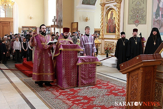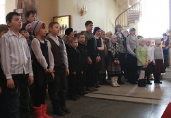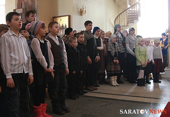 Перед началом конкурсных испытаний в Свято-Покровском храме руководитель Отдела религиозного образования и катехизации Саратовской епархии священник Сергий Штурбабин совершил молебен. За богослужением молились воспитанники и преподаватели воскресных школ Саратова и Покровска (Энгельса).