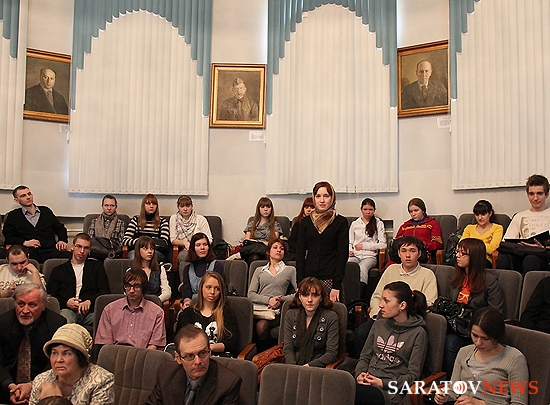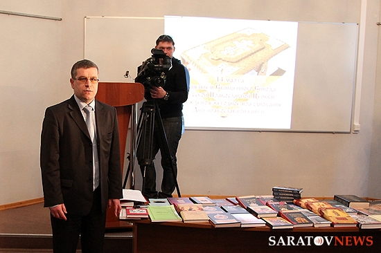 Вчера в X корпусе Саратовского государственного университета имени Чернышевского состоялась встреча Епископа Саратовского и Вольского Лонгина со студентами философского факультета университета. На мероприятии присутствовали проректор по учебно–организационной работе СГУ И.Г.Малинский, декан философского факультета М.О.Орлов, заведующий кафедрой религиоведения и философской антропологии В.П.Рожков, профессора философского факультета, студенты.
