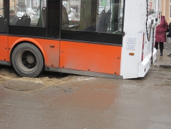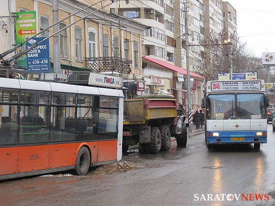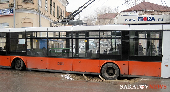По словам корреспондента Saratovnews, троллейбус провалился в асфальт левым задним колесом. Причем колесо опустилось настолько глубоко, что задняя часть машины буквально лежит на дороге. Передняя часть транспорта при этом повернута от полосы движения.