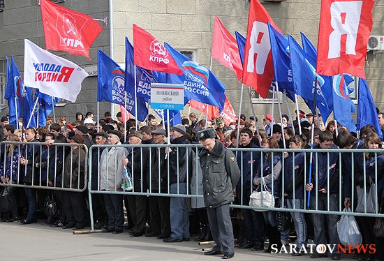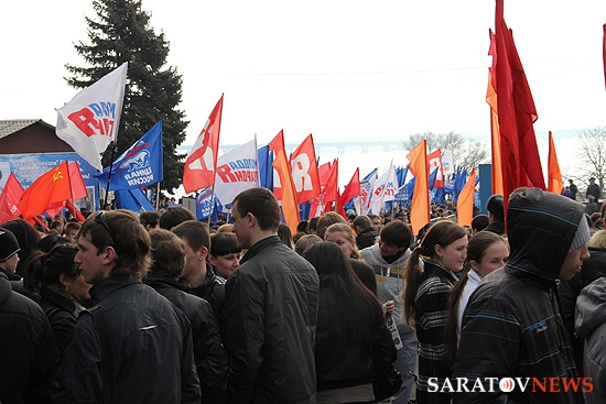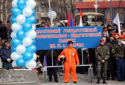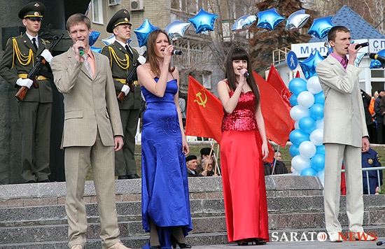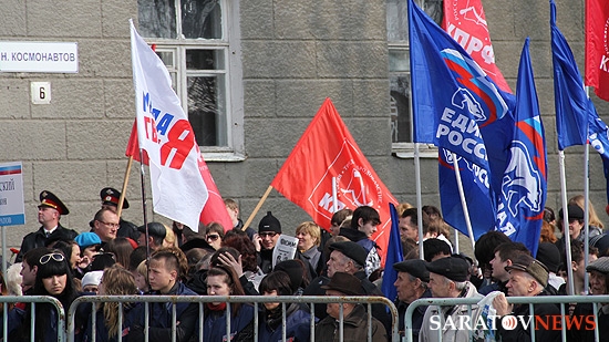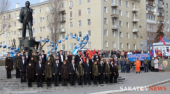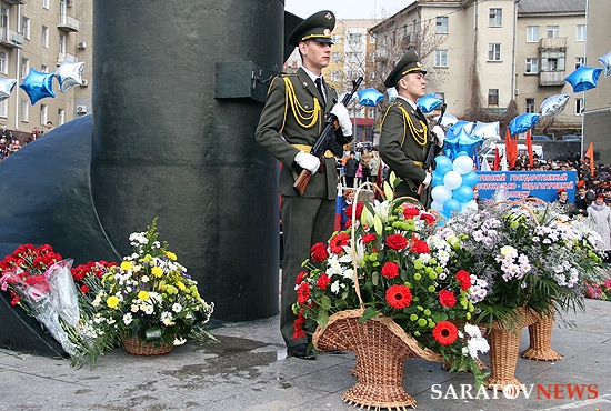 На митинг прибыли также студенты индустриального техникума, в котором учился первый космонавт, многочисленные высокие гости, а также простые саратовцы. Всего на площади Гагарина собралось около полутысячи человек.