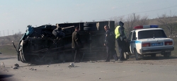 У въезда в Саратов со стороны Елшанки сегодня во второй половине дня на трассе Саратов - Пенза произошло ДТП - лобовое столкновение грузового автомобиля "МАЗ" и внедорожника. От удара грузовик перевернулся набок, а внедорожник сильно изуродован. Есть пострадавшие, возможно, погибшие. Подробности аварии выясняются.