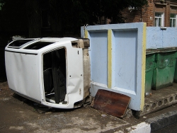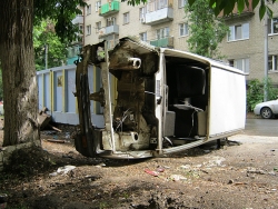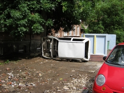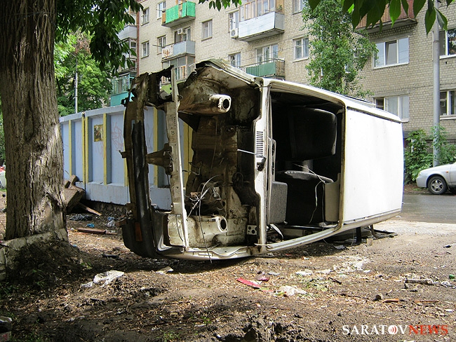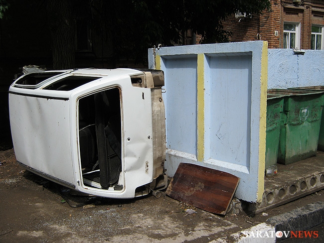 Малолитражный автомобиль марки "Ока" оказался выброшен у мусорного контейнера в центре Саратова. Транспортное средство, принадлежащее неизвестным владельцам, лежало у помойки на улице Белоглинской, неподалеку от пересечения с Чапаева.