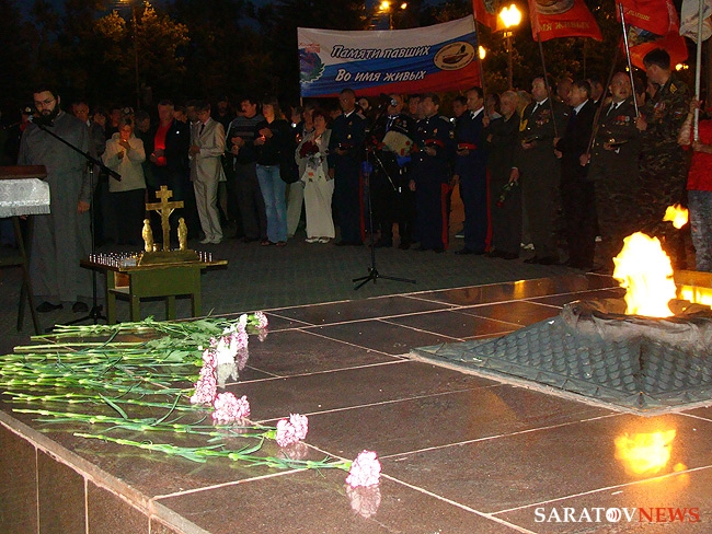 Сегодня, в 4.00 утра в Парке Победы на Соколовой горе в Саратове прошло мемориальное мероприятие - "Вахта памяти", посвященное 70-летию с начала Великой Отечественной Войны. В акции приняли участие не только высокопоставленные политики и общественные деятели, но и рядовые саратовцы, решившие в "день Скорби" почтить память ветеранов.