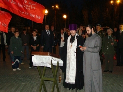 Несмотря на ранний час все участники акции собрались у Парка Победы заранее. Возможно, поэтому мероприятие было решено начать на несколько минут раньше запланированного. Приблизительно в 3.55 собравшиеся, колонной с флагами и плакатами, двинулись по дороге к главному входу в парк. Затем, ровно в 4.00, у вечного огня православные священники провели службу. В руках люди держали зажженные свечи в память погибших.