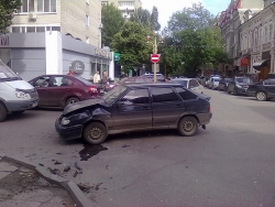 В эти минуты сотрудники ГИБДД работают на месте ДТП в Волжском районе Саратова. На пересечении улиц Некрасова и Волжская столкнулись "четырнадцатая" и "Ауди А8", сообщает корреспондент Saratovnews с места происшествия. Пострадавших в аварии нет, у "ВАЗа" сильно повреждена передняя часть, у "Ауди" из 47-го региона (Ленинградская область) отлетело колесо.