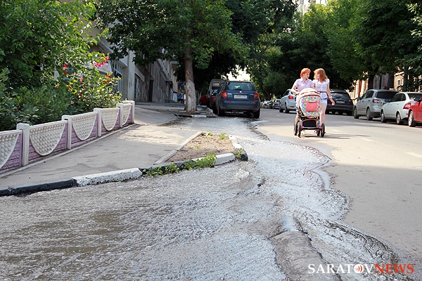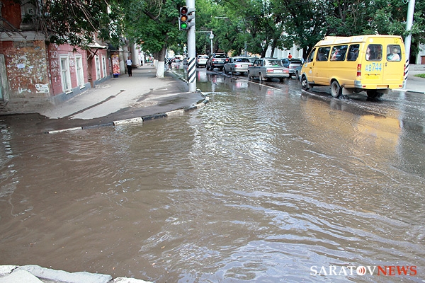 В данный момент в центре Саратова происходит сильный излив воды. Выяснилось, что коммунальная авария случилась на улице Комсомольская (на пересечении с Первомайской).