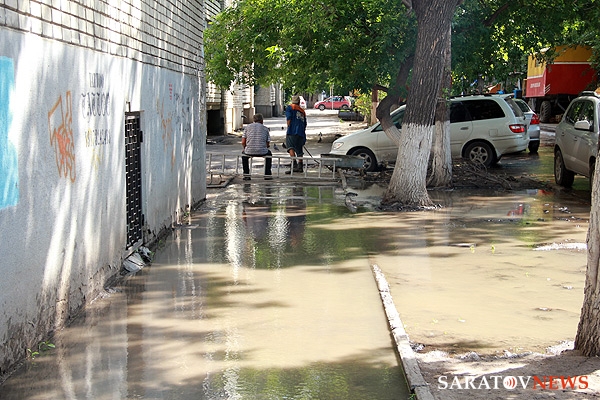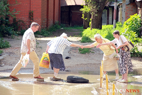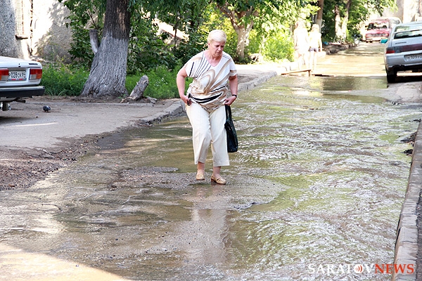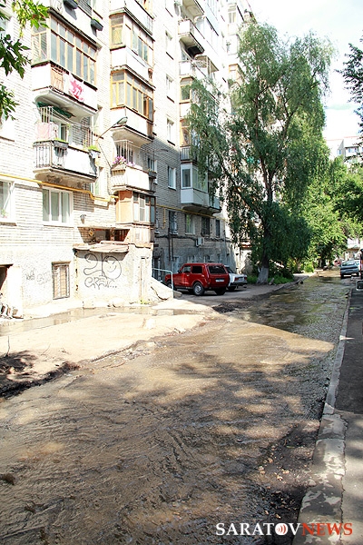 Одна из жительниц многоэтажки по улице Первомайской, 47/53, чей двор был затоплен заявила корреспонденту Saratovnews: "Наш дом вообще является проблемным! Как вода, так сразу нас топит. Дом уже от этого рушится на глазах. Но никто этой проблемой не занимается".
