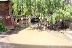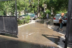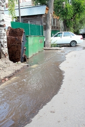 Как оказалось, колодец, который являлся источником крупного излива, расположен рядом с двухэтажными домами. Но в итоге вся вода течет в многоэтажный жилой массив. Буквально все дворы в округе оказались в холодной воде. Ее настолько много, что и пожилые, и молодые люди, не решаясь пройти через реку шириной в несколько метров, разворачиваются и идут в обход.