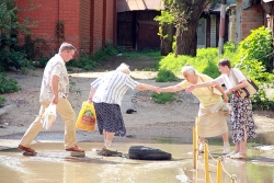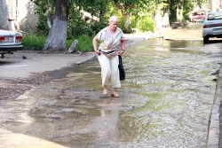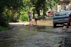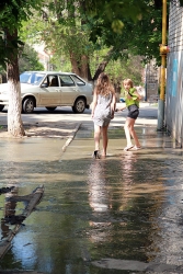 Между тем, некоторым "холодная" авария пришлась по душе. Молодежь, дети, и даже люди среднего возраста, разувшись, зашли в "реку", чтобы охладиться от летней жары.