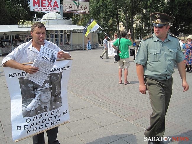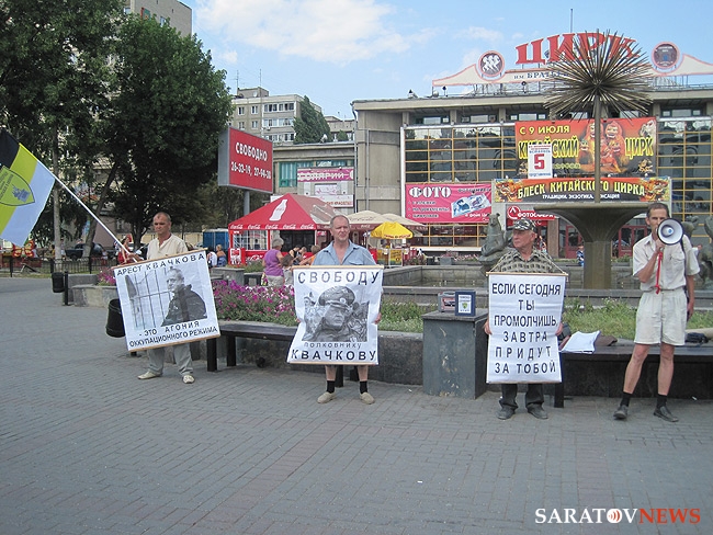 Организатора пикета в поддержку политзаключенных, сопредседателя "Русского блока - Саратов" Павла Галактионова, после акции доставили в полицию. Предложение пройти в участок правоохранительные органы мотивировали тем, что митингующие незаконно воспользовались громкоговорителем.