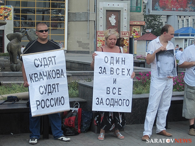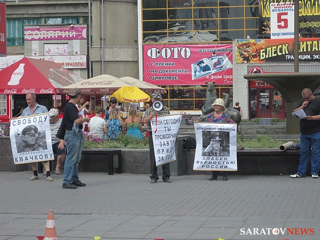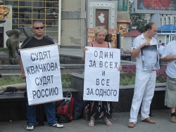 Стоит отметить, что эта версия выглядит правдоподобно. По крайней мере, высказывания некоторых участников пикета имели очень радикальный характер, чем и привлекли внимание прохожих. Около 14.30, всего через полчаса после начала пикета вокруг немногочисленных выступающих начала собираться аудитория из прохожих, заинтересовавшихся словами ораторов и плакатами. Последние, в частности гласили: "Если ты сегодня промолчишь, завтра придут к тебе", "Ходорковского судит самый гуманный суд в мире. А где – независимый и честный?!", "Судят Квачкова – судят Россию".