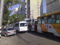 Около часа назад на пересечении улиц Советской и Рахова Саратова произошло ЧП. Трамвай, следующий по маршруту №3, встал посредине перекрестка, парализовав движение общественного и частного транспорта.