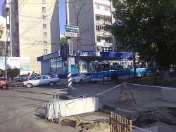 При этом, ситуация осложняется еще и тем, что на перекрестке идут дорожные работы. Чтобы преодолеть перекресток водителям автотранспортных средств приходится длительное время.