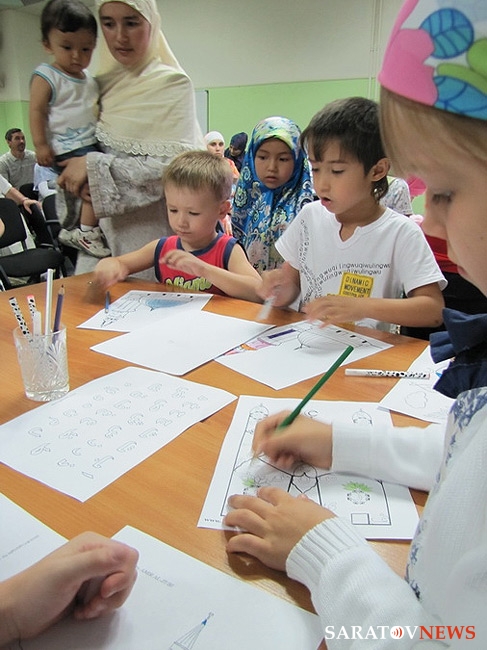 Специально для ребят организаторы также подготовили разукрашки на любой вкус – с машинами и арабскими буквами, мечетями и цветами. Маленькие мусульмане охотно взялись за карандаши, и самые лучшие работы теперь украшают холл саратовской Соборной мечети.