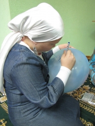 Помимо разукрашивания, в этот день на встрече с малышами работали еще две секции. Дети могли порадовать своих родителей, подарив им воздушный шарик с нарисованными собственноручно улыбками. Кроме того, активистки "Родника" по желанию ребенка наносили специальными цветными ручками для тела рисунки на ладошки. Скучать на первой рамадановской встрече ребятам не пришлось.