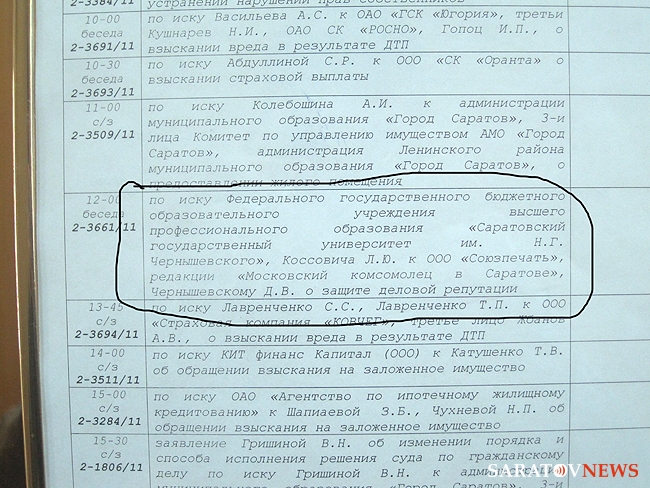 Напомним, ректор СГУ имени Чернышевского Леонид Коссович подал исковое заявление в Волжский районный суд Саратова на "МК" в Саратове" и журналиста, экс-проректора вуза Дмитрия Чернышевского. Ректор намерен отстаивать деловую репутацию, подорванную, по его мнению, заметкой "Коссович сдал "Единую Россию".