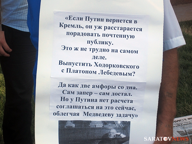 Консолидацией против общего врага - партии "Единая Россия" - объяснили представители объединений коммунистов, демократов и националистов свой совместный митинг, который состоялся 31 августа у памятника Чернышевскому в Саратова. Однако, некоторые оппозиционеры скептически относятся к дальнейшему сотрудничеству такой "разношерстной" политической массы и считают, что "союз оппозиции" просуществует до середины осени.