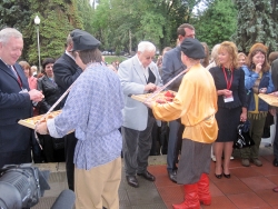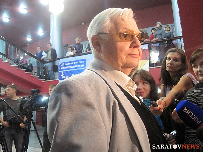 Табаков немало удивил саратовцев, спев со сцены куплет одной из народных песен. "Я подумал, что надо что-нибудь такое исполнить, чтобы вы поняли, что я из Саратова. Я один куплетик спою, а вы потерпите", - после чего приступил к народному пению.