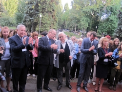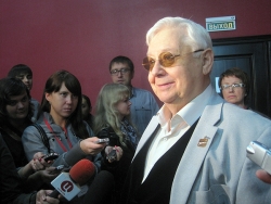 Затем, под аплодисменты зала актеру были вручены цветы от губернатора области Павла Ипатова, после чего начался показ фильма "Шумный день", в котором 50 лет назад Табаков сыграл одну из своих первых ролей.