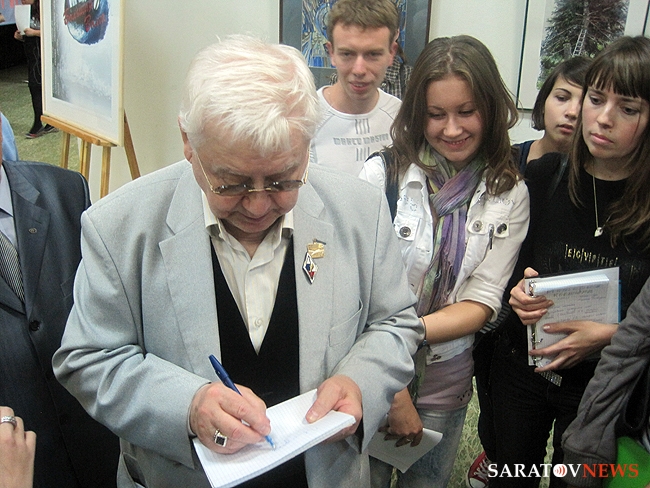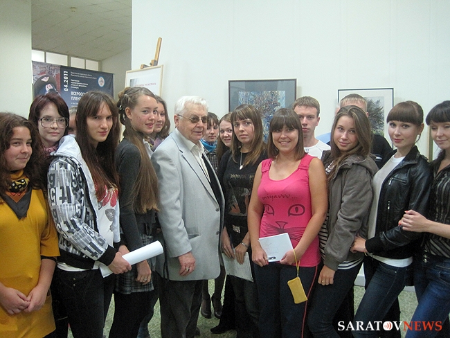 Народный артист СССР, почетный гражданин Саратовской области Олег Табаков 13 сентября посетил саратовское художественное училище имени А.П. Боголюбова, где пообщался со студентами и осмотрел выставку картин.