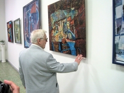 Актер обошел экспозицию саратовских художников, участников всероссийской выставки "Большая Волга", которая, как рассказали Табакову сотрудники училища, посвящена тысячелетию единения мордовского народа с народами России.