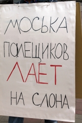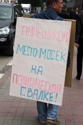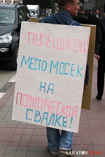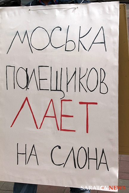 Мужчина ходил вокруг памятника Столыпину с плакатами следующего содержания: "Моська Палещиков лает на слона", "Палещиков, место мосек на политической свалке".