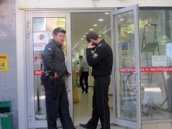 Работы по сносу начались около 11.30. Здание магазина было огорожено лентой, у входа дежурили представители полиции и судебные приставы.